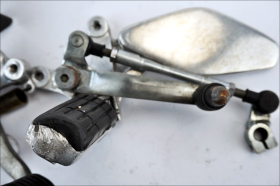 YAMAHA YZF 600 R THUNDERCAT 96 04 Rider footpegs with gear shift lever, brake lever, uniball rod, and original heel guards