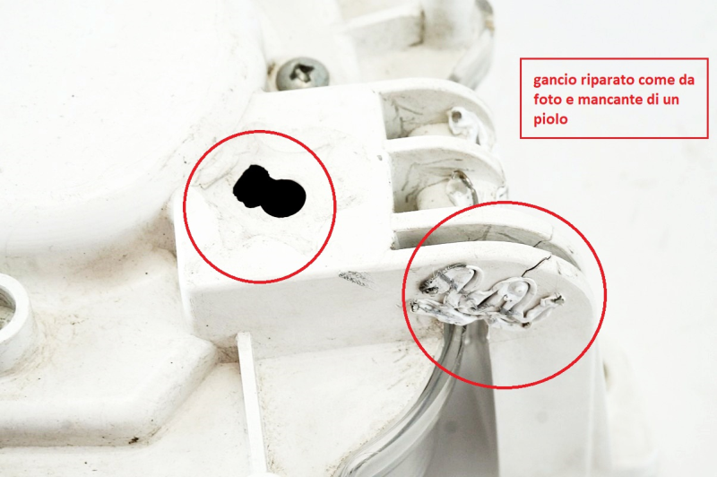 Product intact with signs of use, hook repaired as shown in the photo and missing a pin peg
