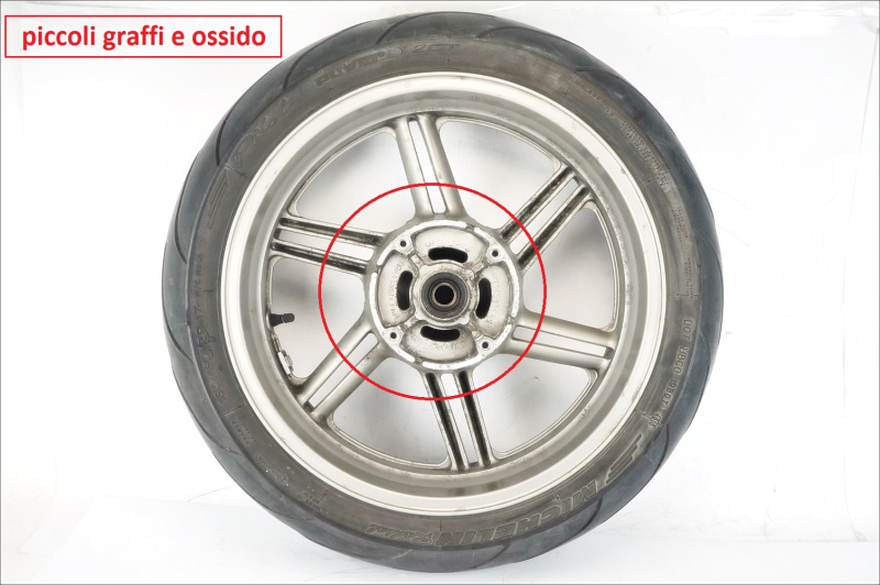 Prodotto integro con segni di uso, piccoli graffi e ossido. Pneumatico utilizzabile ancora al 30%