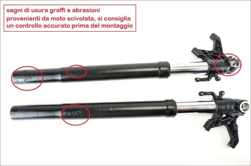 Product with signs of use, scratches, and Abrasions. Coming from a skidded motorcycle, a thorough inspection is recommended before assembly.