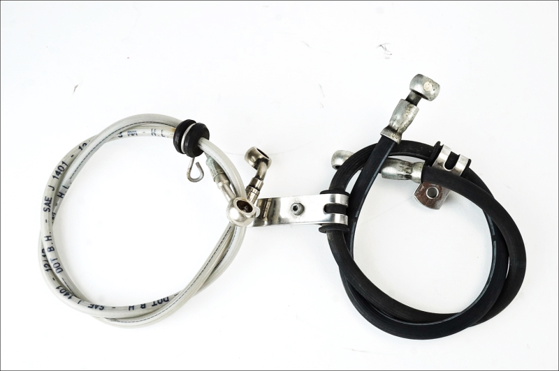 Aircraft braided front brake hose and rubber rear brake hose