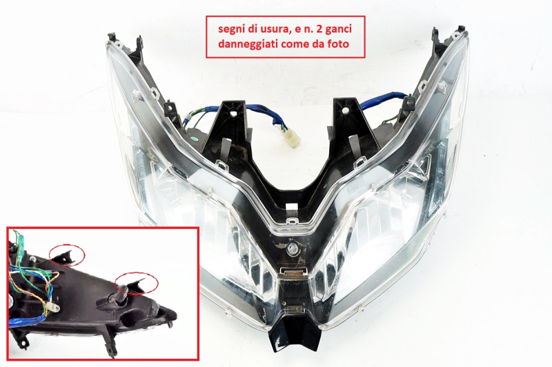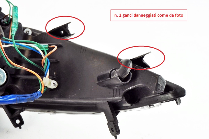 Prodotto integro con segni di uso e n. 2 ganci danneggiati come da foto, corredato del rella relativa carena beccuccio anteriore