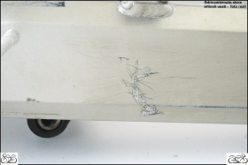 Prodotto integro e dritto ma esfoliato con vari graffi e segni di uso