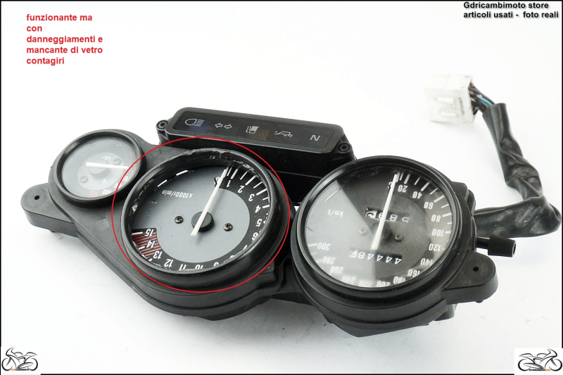 Prodotto funzionante ma con danneggiamenti e mancante di vetro contagiri come da foto.