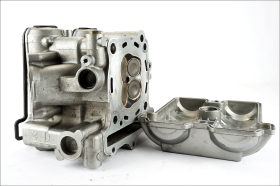 Testata completa di albero a camme, molle, valvola e martelletti punterie